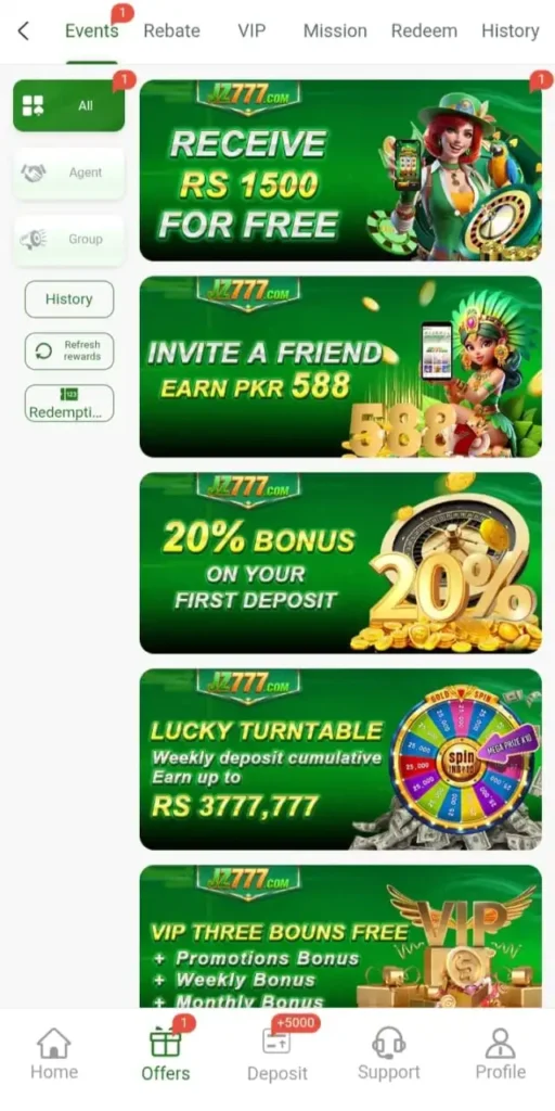 The user experience on JZ 777 game is simple, smooth, and enjoyable. The app has a clean design, making it easy for users to navigate and find games quickly. Games load fast without lag, giving a seamless experience even for beginners. Players can enjoy multiple games, including casino-style, casual, and card games, all in one app. Daily bonuses and rewards keep users engaged and motivated. The app works on most Android and iOS devices, allowing gaming anytime. Secure deposits and withdrawals through Easypaisa and JazzCash make the platform safe and reliable for all players.
